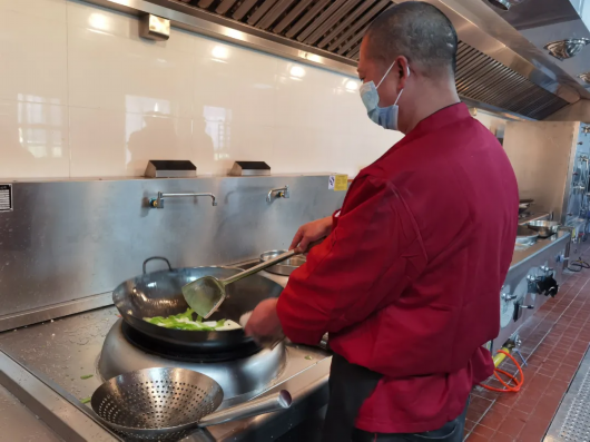 “老伯您好,您是住在香花桥街道的吧?60岁以上的老人是可以办理助餐服务卡的。”香花桥街道民惠社区长者食堂虽然刚开业不久,但是每天都会吸引周边的老年人前来办理助餐服务卡。在就餐大厅,还没有到午饭时间,已经有一些老人前来等待就餐。厨房里,厨师正忙着颠勺、翻炒,烹制着适合老年人的口味的菜肴。