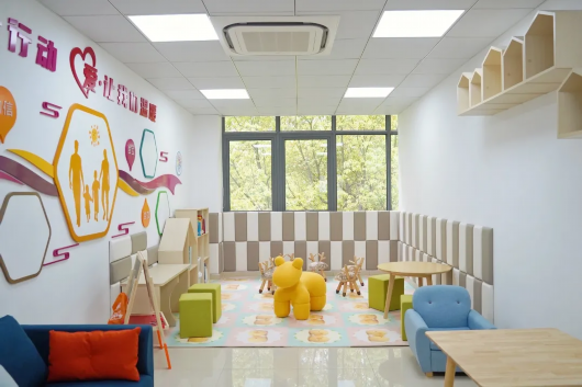 一楼的老年视听间在满足老年人群视讯、讲座需求的基础上,还兼顾会议、爱心理发等功能。二楼则融入更多极具艺术、活力的元素,发挥综合服务、综合活动、文化休闲等多种功能,满足各个年龄段居民的不同文化生活需求。