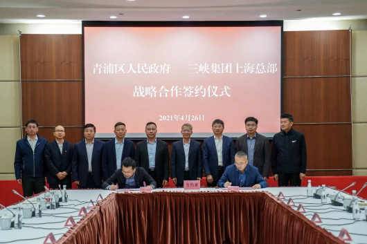 4月26日上午,青浦区政府与三峡集团上海总部举行战略合作签约仪式。双方将以此次签约为新的起点,围绕生态环保、清洁能源、片区开发、乡村振兴等方面进一步加强互惠互利,合作共赢。青浦区委副书记、区长余旭峰,三峡集团上海总部党委副书记、总经理石小强出席并讲话,副区长彭一浩和三峡集团上海总部副总经理周江代表双方签约。
