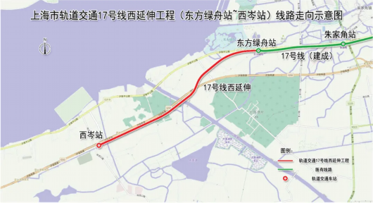 上海轨交17号线西延伸,东起东方绿舟站,沿沪渝高速公路南侧延至西岑,长约6.6公里,已于6月28日开工。