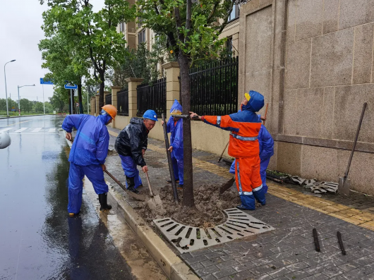 美都环卫为确保台风登陆期间道路路面的整洁,从7月24日起每天出动道路保障人员350人上岗,夜间安排120人值守;每天对9792个重点路面排水口、661只果壳箱进行清理;每天出动各类机械车辆60车次,确保道路路面干净整洁。