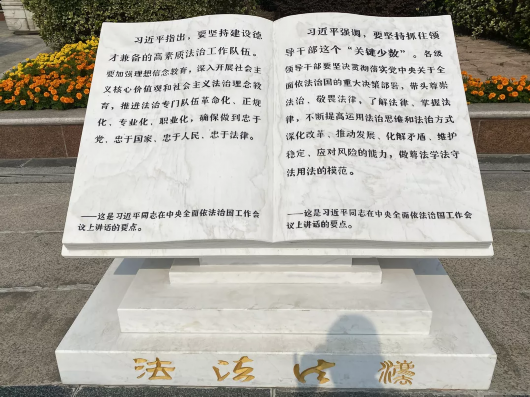 据介绍,在设计理念上,法治广场既有开门见山的点睛之笔,也有寓意深远的层次表达,既有为人处世的法度考量,也有善恶博弈的警示思考;在形式表达上,法治广场以“法度”“棋盘”“法鼎”“宪法宣誓墙”等不同展现形式让漫步于此的群众在潜移默化中接受法治文化的熏陶、浸润和启迪;在内容传播上,法治广场不拘一格,贯穿古今的法治思想透露出泱泱中华极具深厚的法治文化底蕴。
