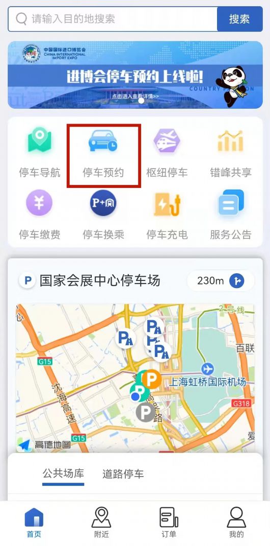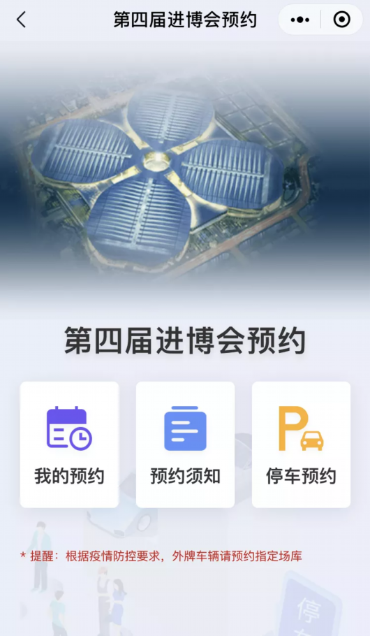 打开“上海停车”小程序,点击进入第四届进博会停车预约页面,选择“停车预约”,即可预约进博会停车位~