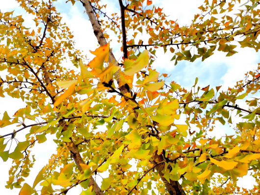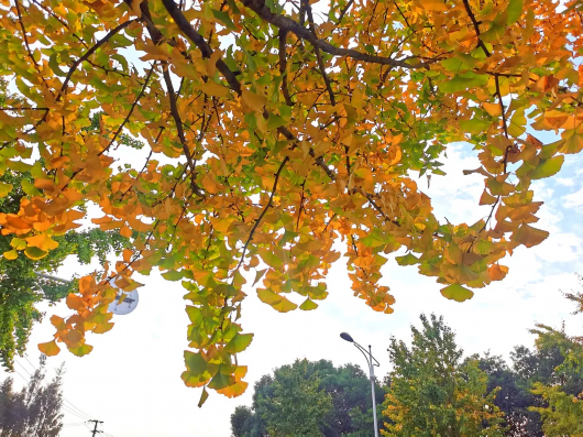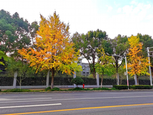 “东篱菊酒秋风过,满且唯留落叶频。”随着秋意渐浓,华乐路两旁栽种的银杏树叶已泛起金黄。金灿灿“黄金叶”挂满枝头,随风摇曳,在暖阳的照耀下灿若云锦,仿佛让人置身童话王国。驻足细看,每片扇形的树叶都被阳光镶上了一圈金边,在微风的吹拂下,轻轻舞动,沙沙作响,偶有几片飘落,似彩蝶飞舞,播撒下一片璀璨,更是增添了几分浪漫。
