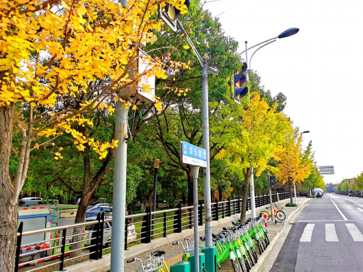 银杏树是青浦城区不少主干道的行道树,也是主要的色叶树种之一。这两天,青浦街头的银杏树开始披上最华美的“金装”,形成一条条景色绚丽的“金光大道”,灿若云锦,分外养眼。