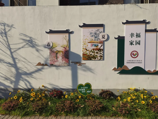 同样的,在盈浦街道盈联居民区内,墙角边的“小变化”也让居民惊喜不已。新种植的黄色雏菊等花卉随风摇曳,在阳光的照射下赏心悦目。花卉上方,一幅幅壁画与树影、路影把白色的墙壁装扮得格外清新、诗意。趁着午后,社区里的阿姨们边走边看,时不时传来开心的笑声。
