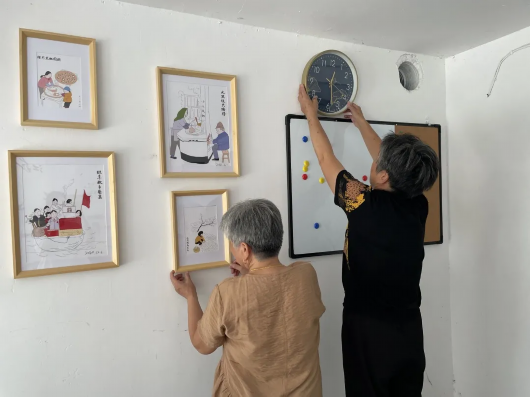 改造初期,业委会、物业和居民积极配合,多次召开方案征询会、沟通会,广泛征集居民对建设楼道微改造的意见,经过反复商议后,“公共客厅”的改造方案一项项敲定,由于大楼里住的大多是年迈的老人,因此楼道命名为“老来乐”。