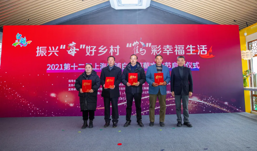 昨天(12月28日)上午,以“振兴‘莓’好乡村‘鹤’彩幸福生活”为主题的2021第十二届上海青浦白鹤草莓文化节在白鹤镇胜新村启动。市农业科学院党委书记、院长蔡友铭,区委副书记张权权,区领导叶靖、张彦、陈汇青,新民晚报社副总编杜旻等出席启动仪式。
