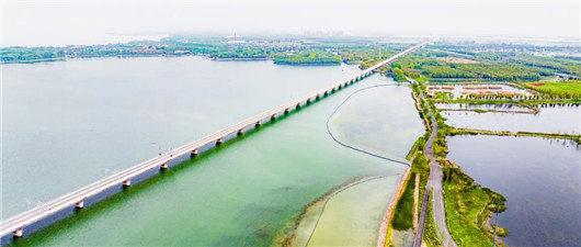 ▲2024年3月,青浦金泽与吴江汾湖交界处,沪苏湖铁路横穿元荡,长三角区域一片郁郁葱葱。