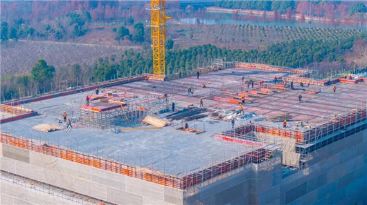 从冬末到初春,在福寿园上善拾光里生命文化产业综合体项目工程现场,钢架林立,机声隆隆,每天都是火热的建设场景,工人们夜以继日加速推进工程建设进度。