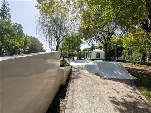 沿公园主要健身步道,配置了健身器械、宣传栏。另外,公园里开辟出一块滑板空间,滑板场利用天然条形通道,创造活力运动空间。公园里的原有再生资源交投站改造提升为爱心驿站方便居民使用。