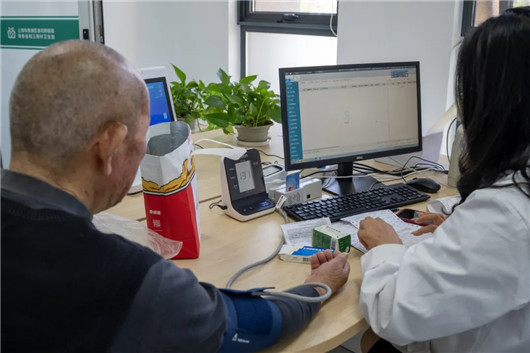 “现在我们这里老年人量了血压都会实时联网上传到系统中,我们系统也会跟踪记录每一位病患的健康数据。”记者在现场看到,除了联网的健康测量设备外,墙上也详细记录了社区高血压、糖尿病等老年人常见病以及65岁以上老年人的管理人数。